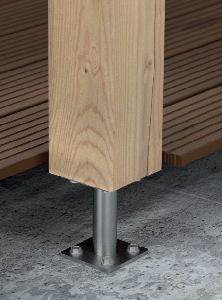 Pevná konstrukce pro stabilní spojení masivních sloupů s podkladem. Sevřená konstrukce pro stabilní spojení velmi hmotných sloupů.