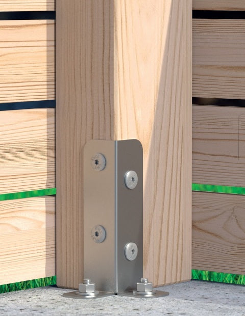 Lehká patka určená pro spojování dřevěných sloupku s betonovým podkladem. PSB Rohová konstrukce patky PSB poskytuje lepší stabilitu sloupu a perfektně se hodí pro montáž u stěny.