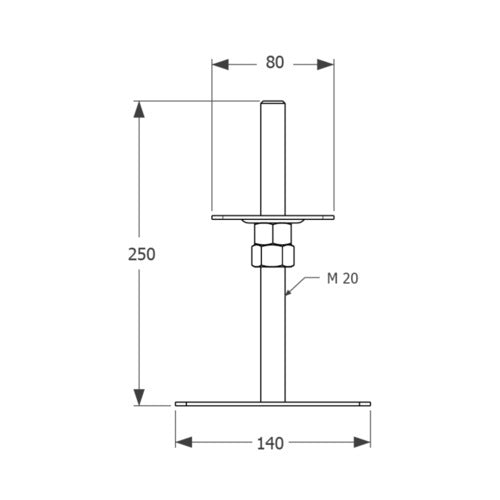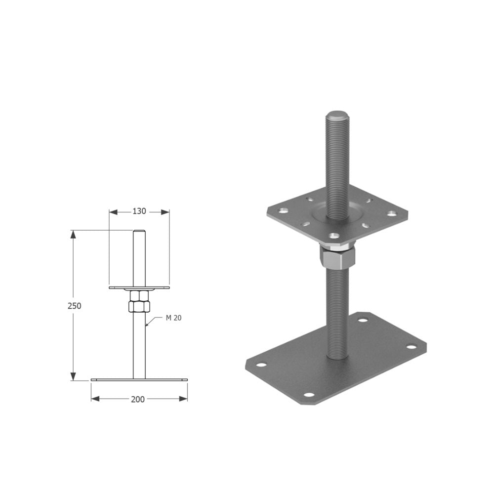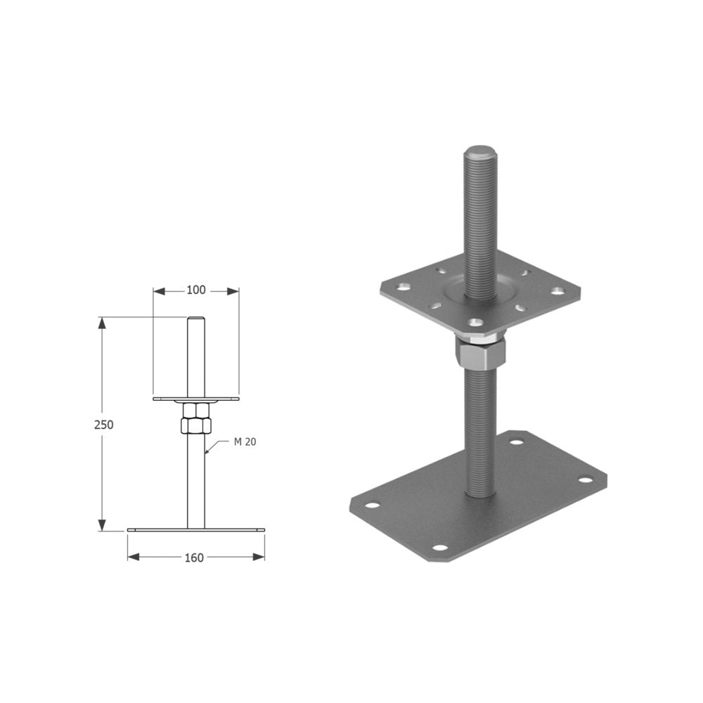 Patka sloupku pro osazení na tvrdém podkladu, s individuálním nastavením vzdálenosti sloupu od podloží. Pro použití při svislých zatíženích.