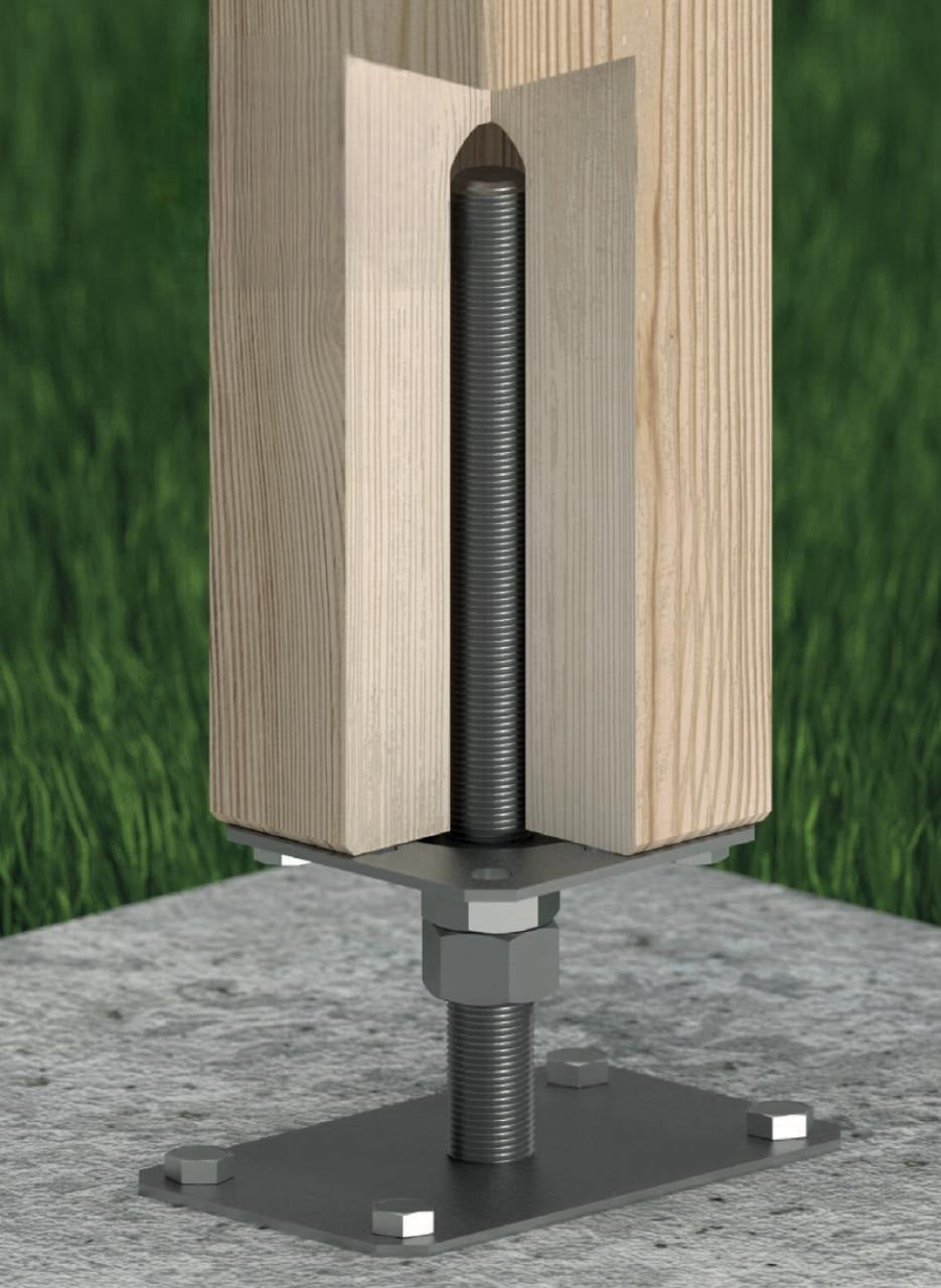 DOMAX PSRP šroubovací patka sloupku nastavitelná závitová je zahradní konstrukční prvek. Třírozměrné spojky DMX slouží k pevnému a spolehlivému upevnění dřevěných prvků k betonovým nebo ocelovým konstrukcím, případně k jiným nosným prvkům. Používají se ke spojování kolmých nosných prvků z masivního dřeva vedle sebe za účelem vytvoření spojů, které musí splňovat požadavky na mechanickou pevnost a trvanlivost, jak je definováno v základním požadavku na stavby č. 1 podle nařízení (EU) č. 305/2011.