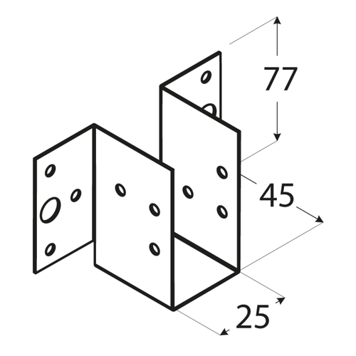 DOMAX WL trámová botka lehká je kovový konektor pro montáž hranolů pro používání v lehkých konstrukcích. Velké montážní otvory umožňují nejen spolehlivé šroubování do dřeva, ale také pevné připevnění hranolu k betonové stěně pomocí vhodných kotev. Prvek je vyroben z pozinkovaného plechu třídy DX51D s povrchovou úpravou Z275 a tloušťkou přibližně 1,0 mm, takže poskytuje dlouhodobou odolnost proti korozi.