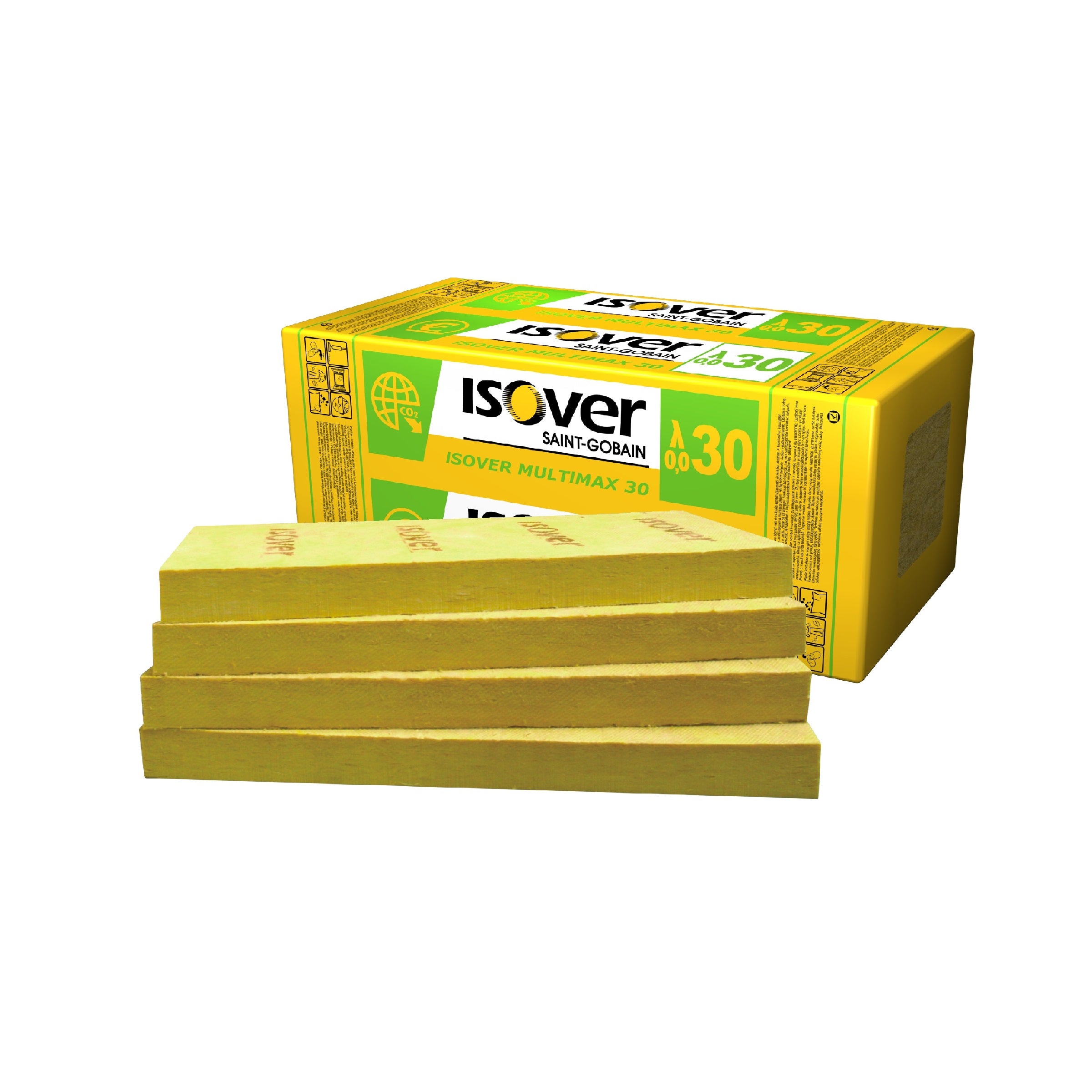 Isover MULTIMAX 30 λ 0,030 univerzální izolační desky tepelná izolace vyrobená ze skelné vlny Isover. Výroba je založena na metodě rozvlákňování taveniny skla a dalších příměsí a přísad. Vytvořená minerální vlákna se v rámci výrobní linky zpracují do finálního tvaru desky. Vlákna jsou po celém povrchu hydrofobizována. Izolaci je nutné v konstrukci chránit vhodným způsobem proti povětrnostním vlivům (vnější opláštění, ev. difuzní fólie).