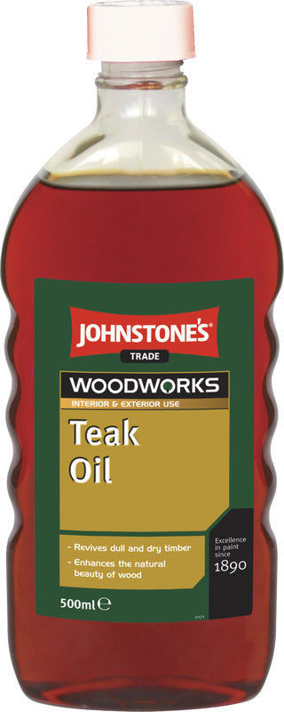 JOHNSTONE'S Teak Oil teakový napouštěcí olej na dřevo je speciálně vybraná směs modifikovaných přírodních olejů a vosků na dřevo. Používá sa na udržování neošetřených dřevěných povrchů v interiéru i exteriéru, z kterých zvětraly přírodní oleje. Ochraňuje povrch dřeva před vysušením, zdeformováním a štěpením. Vhodný i na exotické dřeviny a tvrdé dřevo. Dodává dřevu přírodní olej, póry dřeva neuzavře a dřevo tak nepraská. Ideální na všechny druhy hladkých dřevěných povrchů, hlavně na zahradní nábytek, pergoly, altánky, dveře, okenní rámy a terasy v exteriéru.