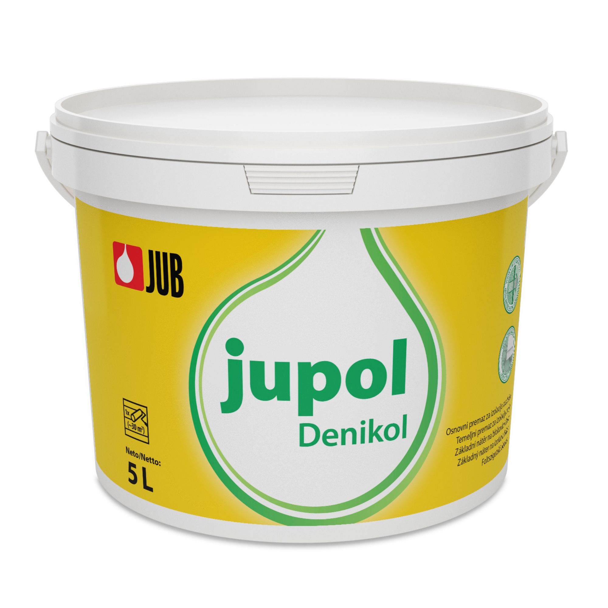 JUB JUPOL Denikol vnitřní prostředek pro izolaci skvrn je nátěr na blokování snadno rozpustných látek na vnitřních površích zdiva, vyrobený za bázi vápna a kaseinu.