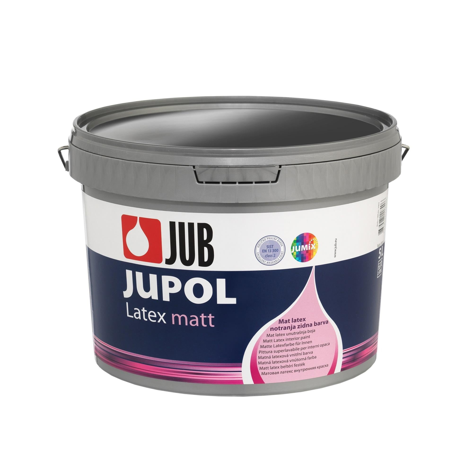 JUB JUPOL Latex matt bílá latexová omyvatelná malířská barva na zeď je šetrná k životnímu prostředí, vyrobená na základě vodní disperze moderních polymerních pojiv. Je určena k dekorační ochraně stěn a jiných povrchů v obytných a občanských budovách, školách, mateřských školách, nemocnicích, hotelech, domovech důchodců a jiných objektech, jejichž hygiena se udržuje častým mytím běžnými domácími čistícími prostředky, jakož i agresivními dezinfekčními prostředky. Vhodnými podklady jsou povrchy vyrovnané vyrovnávacími hmotami, papírové a reliéfní tapety, reliéfní tapety ze skelných vláken i sádrokartonové a vláknocementové desky, dřevotřísky, neomítnutý beton, jemné omítky všech druhů a pod. Možné je i nanášení na dobře přídržné staré podklady a dobře přídržné disperzní nátěry odolné proti mokrému otěru.