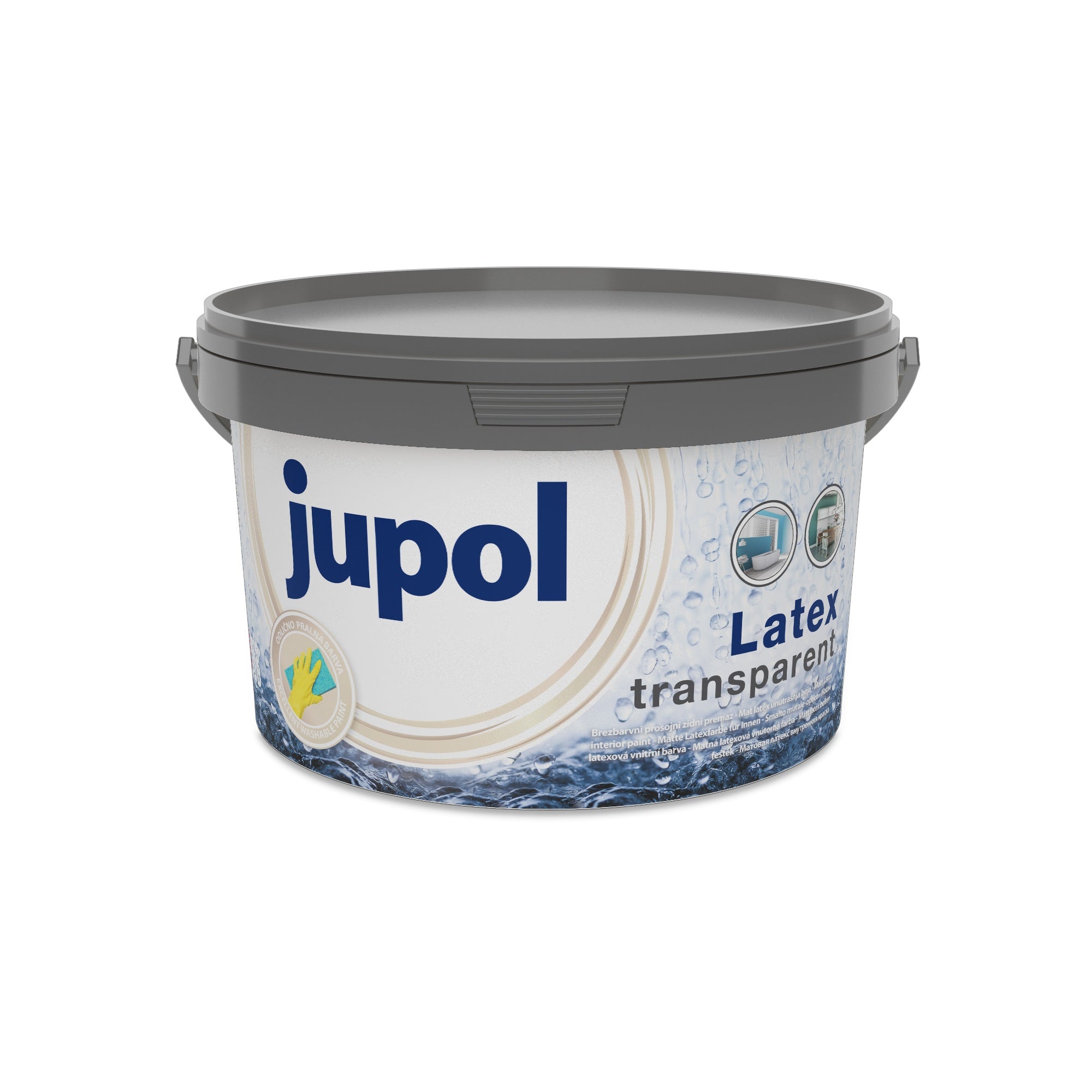 JUB JUPOL Latex transparent bílá latexová omyvatelná malířská barva na zeď je vyrobená na základě vodní disperze moderních polymerních pojiv. Je určen k dodatečné ochraně stěn a stropů v obytných a jiných prostorech, které jsou již vymalované disperzní barvou JUPOL Classic nebo jinou malířskou barvou podobné nebo vyšší kvality. Suchý nátěr je transparentní a má matný vzhled. Barevný film je dostatečně paropropustný a odolný vůči oděru za mokra (omyvatelný). Vyznačuje se nízkým obsahem těkavých organických látek, neobsahuje změkčovadla ani těžké kovy. Snadno se nanáší, jeho jemně „krémová“ konzistence omezuje odkapávání, stékání a stříkání. Nátěr lze použít i v kombinaci s efektními dekorativními třpytkami.