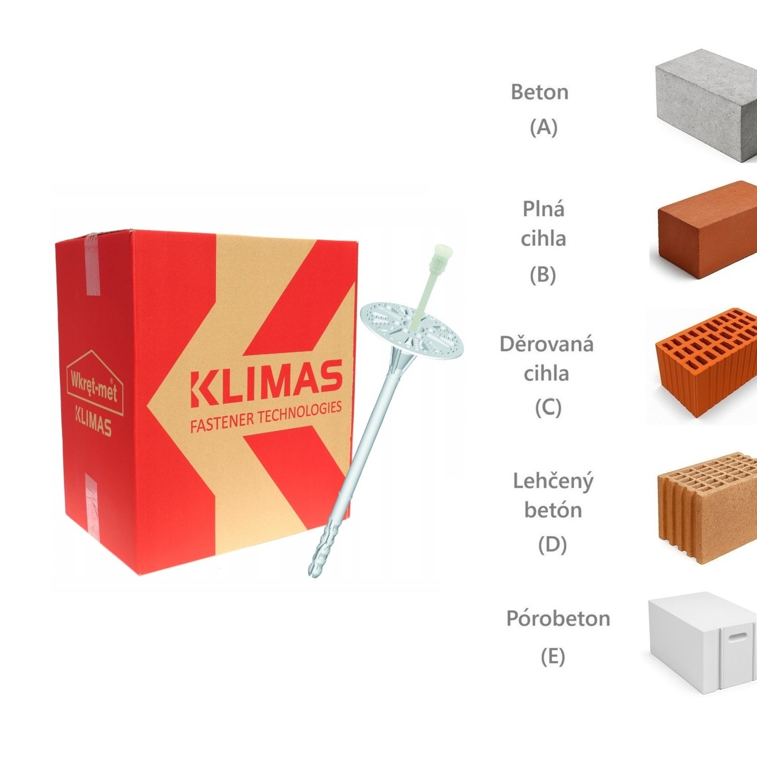 hbKLIMAS Wkret-met LTX-8 Talířová hmoždinka s plastovým trnem a zkrácenou expanzní zónou Ø8 mm je plastová univerzální fasádní, talířová hmoždinka natloukací o průměru 8 mm s předmontovaným plastovým trnem pro mechanické kotvení tepelně izolačních fasádních desek z pěnového expadnovaneho polystyrenu (EPS) a tepelně izolační desky z extrudovaného polystyrenu (XPS) jako součást kontaktního zateplovacího systému ETICS pro rodinné domy, bytové domy, komerční budovy nebo průmyslové stavby. Velkou výhodou talířové hmoždinky LTX-8 je, že je vhodná pro podklady z klasického i lehčeného betonu či zdiva z plných i děrovaných cihel a porobetonu, tedy do podloží kategorie A, B, C, D i E.