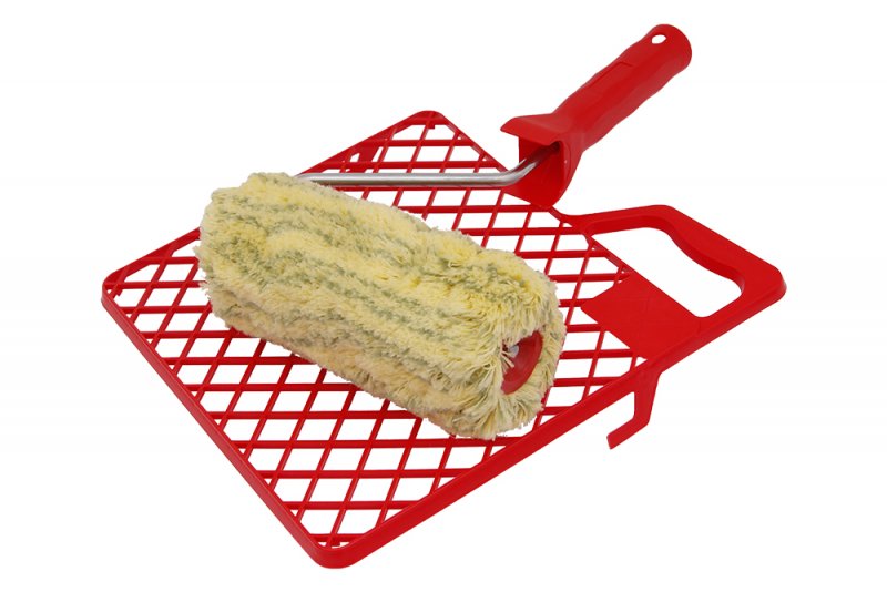 Mřížka 180 (230x260mm). Rukojeť 180x8mm. PES váleček - použití pro disperzní a latexové barvy/laky. Vyrobeno v EU.