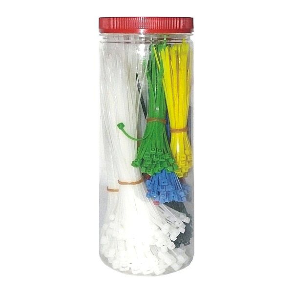 Stahovací pásky různé délky jsou určeny pro rychlé a trvalé upevnění nebo svazování rostlin, kabelů, hadic nebo zavírání pytlů. Stahovací pásky jsou vyrobeny z plastu, v balení se nachází 500 kusů různých velikostí a barev.