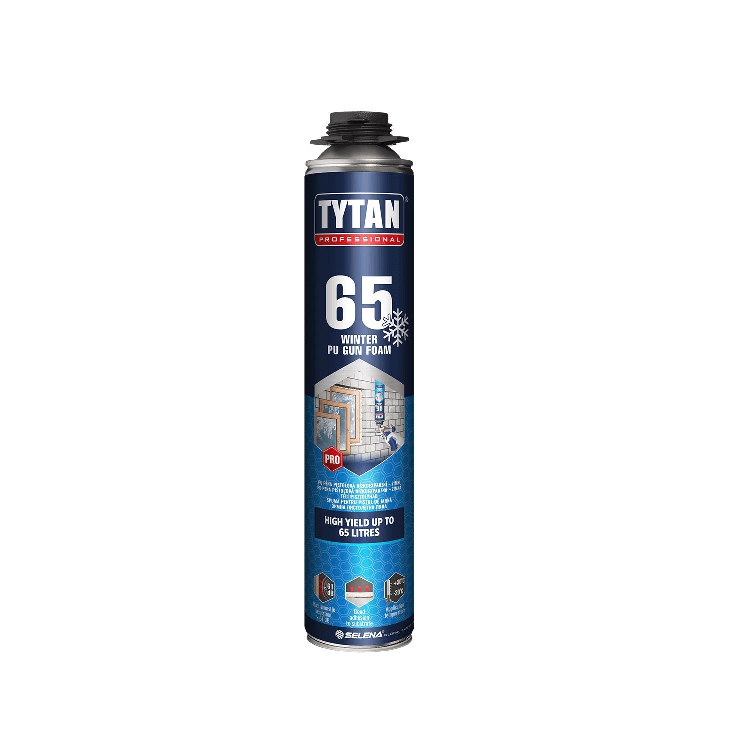 TYTAN 65 zimní montážní PUR pěna pistolová 870 ml je vysoce kvalitní PUR pistolová pěna se zvýšenou vydatností (65 litrů pěny), nízkou post-expanzí a vynikající zvukovou izolací. Vhodná pro profesionální použití během zimní sezóny při teplotě prostředí od - 10 °C.